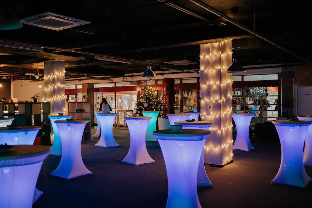 - M( možnosť doobjednať) podsvietené stand by stoly, stoly s lampičkami, osvetlenie